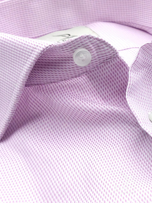 Camicia in Cotone Doppio Ritorto Fantasia Geometrica Lilla Fondo Bianco Collo Francese