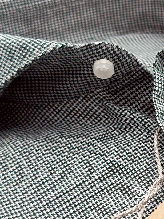 Camicia in Cotone Flanellato Microfantasia Pied de Poule Verde Fondo Bianco Collo Francese Cutaway