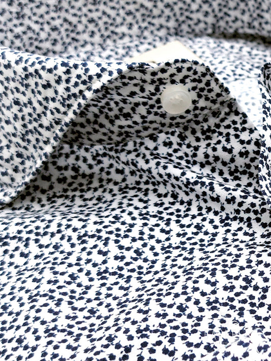 Camicia in Cotone Fantasia Fiorellini Blu Fondo Bianco Collo Francese Cutaway