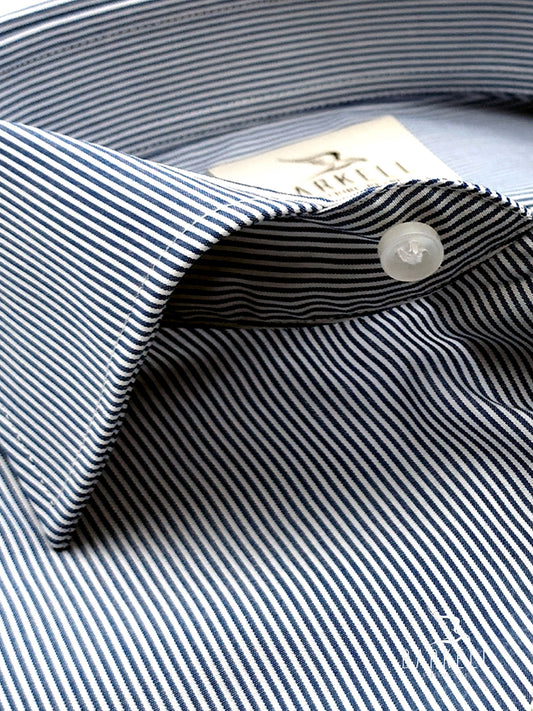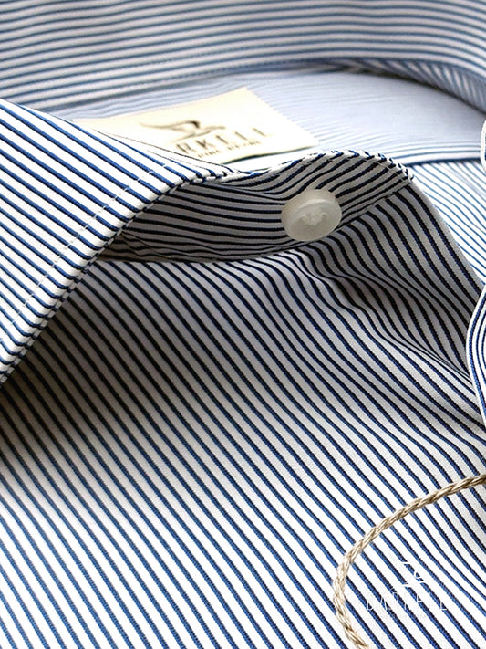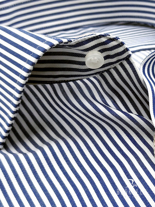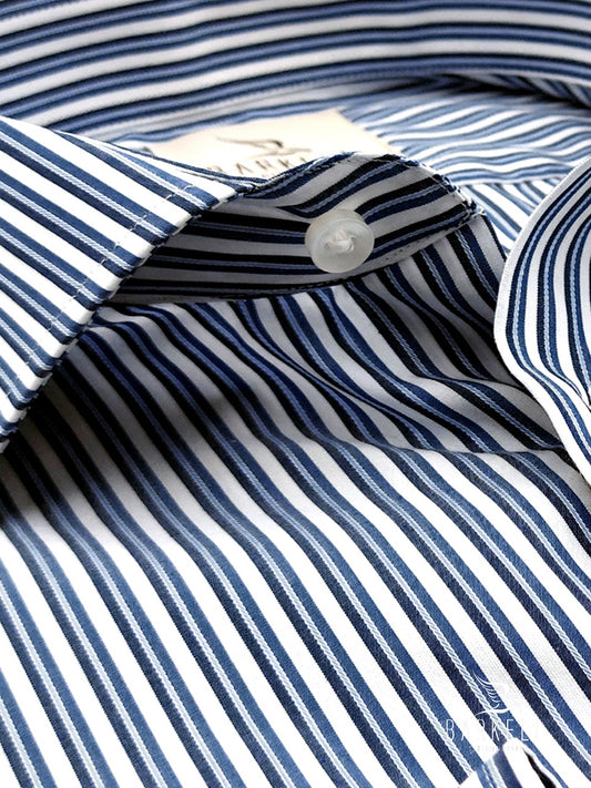 Camicia in Cotone No Stiro Rigata Blu e Indaco Fondo Bianco Collo Francese