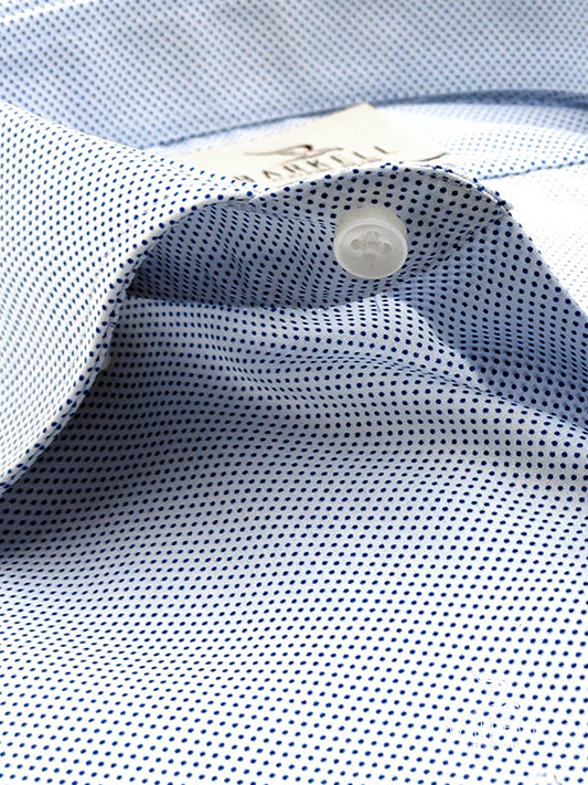Camicia in Cotone No Stiro Microfantasia Pois Blu Collo Francese