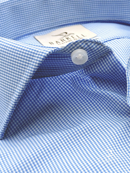 Camicia in Cotone No Stiro Micro Quadro Celeste e Bianco Collo Francese