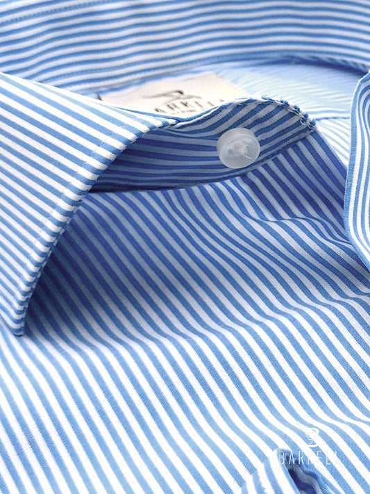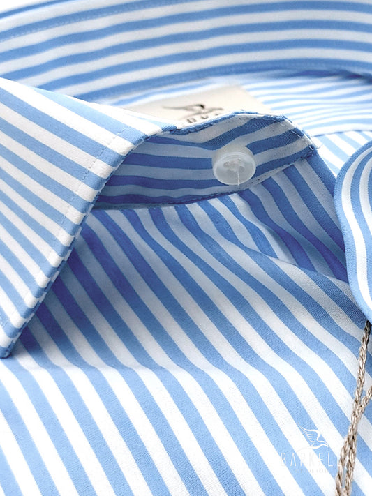Camicia in Cotone No Stiro Rigata Celeste e Bianco Collo Francese