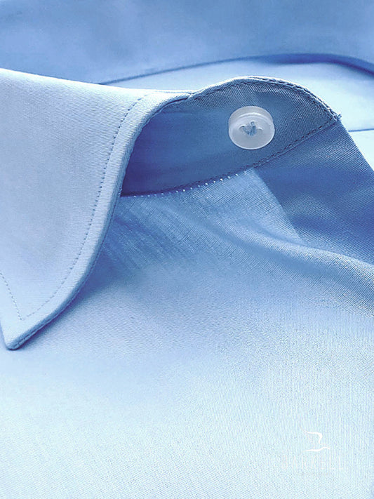 Camicia in Cotone No Stiro Giro Inglese Celeste Collo Francese