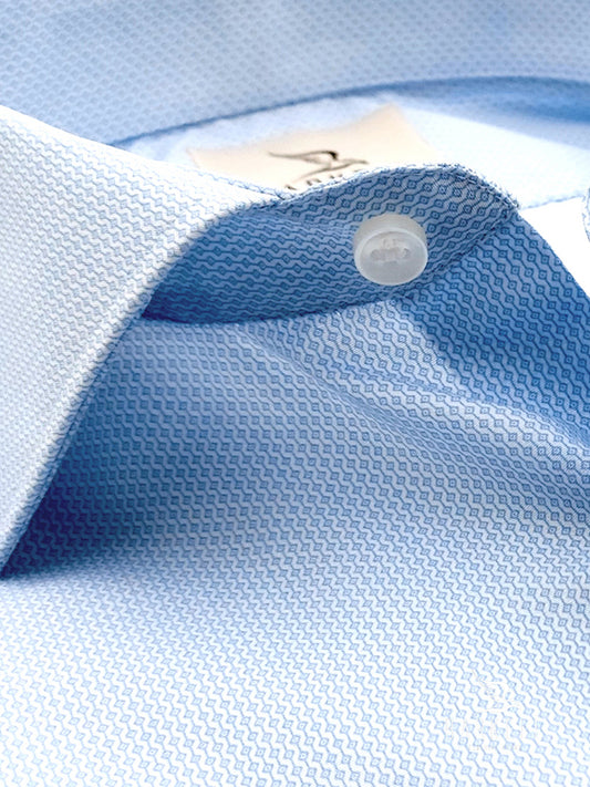 Camicia in Cotone No Stiro Microfantasia Geometrica Celeste Collo Francese