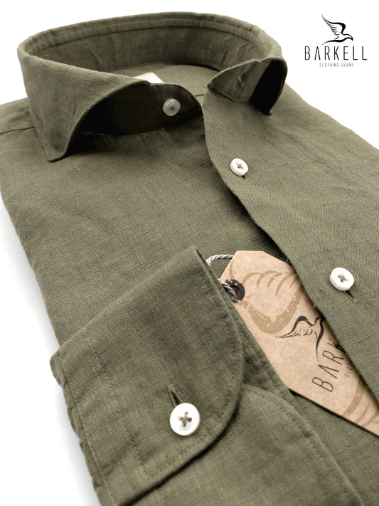 Camicia in Puro Lino Verde Salvia Collo Francese Cutaway
