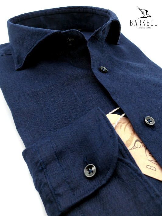 Camicia in Puro Lino Blu Collo Francese Cutaway