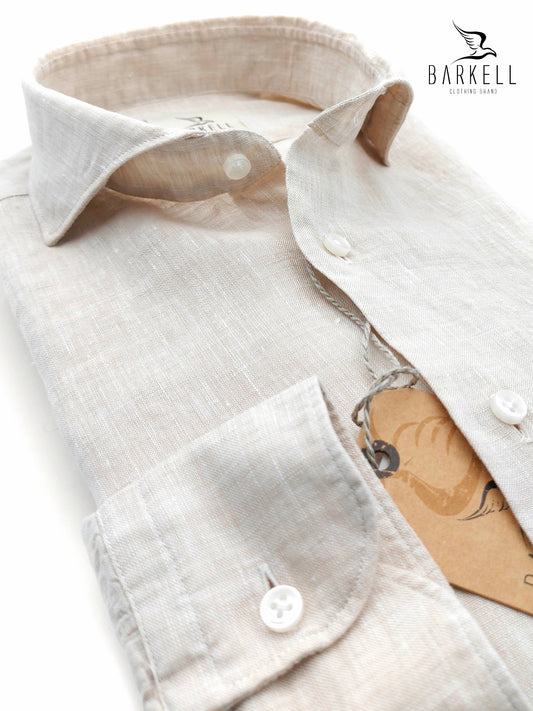 Camicia in Puro Lino Sabbia Collo Francese Cutaway