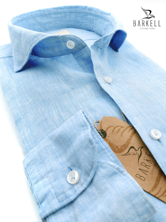 Camicia in Puro Lino Celeste Collo Francese Cutaway