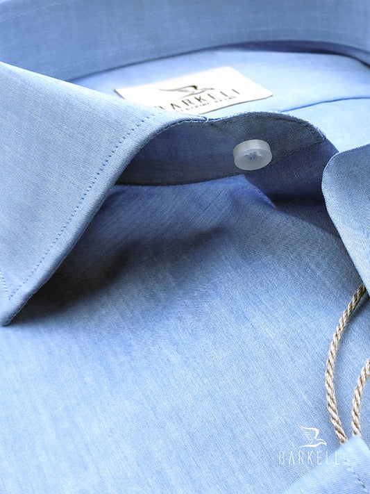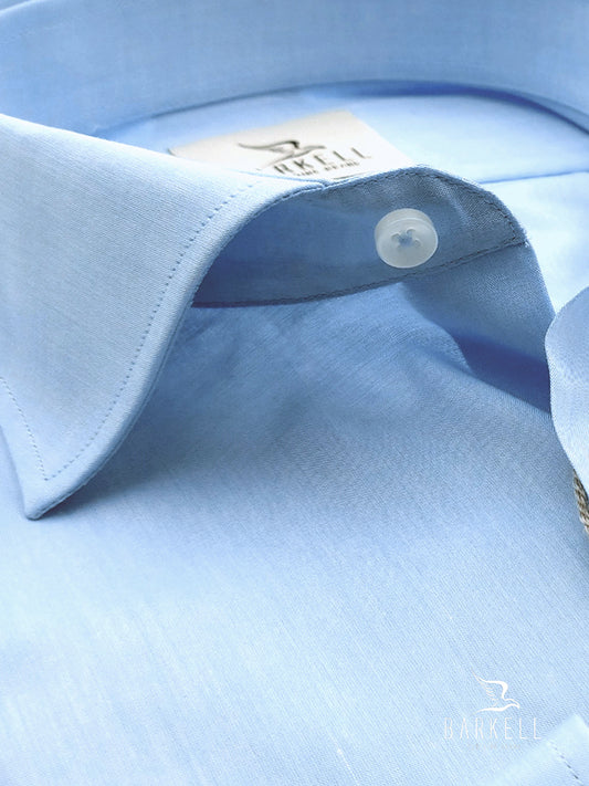 Camicia in Cotone Popeline Azzurro Collo Francese