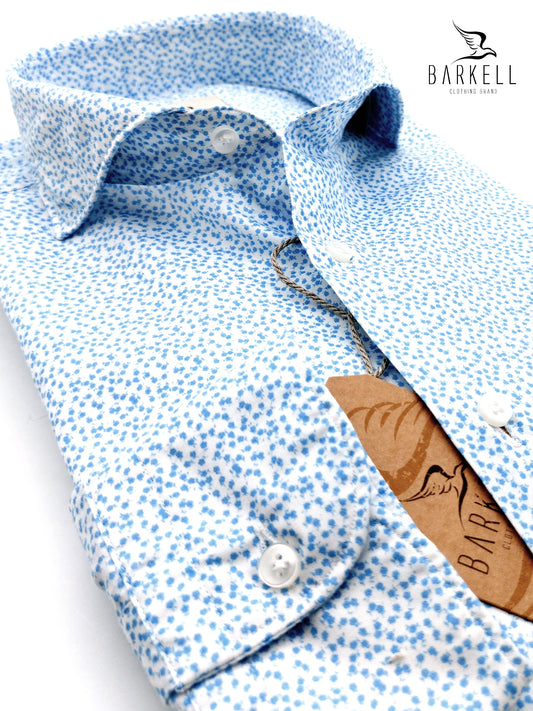 Camicia in Cotone Fantasia Fiorellini Azzurri Fondo Bianco Collo Francese Cutaway