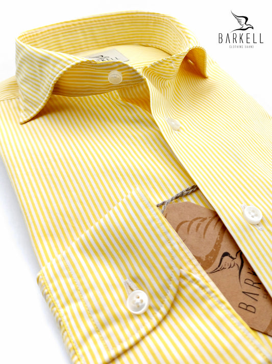 Camicia in Cotone Rigata Giallo e Bianco Collo Francese Cutaway