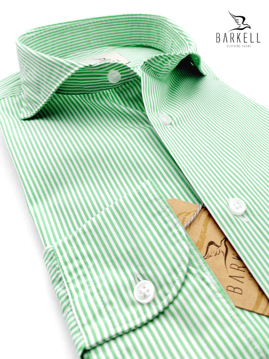 Camicia in Cotone Rigata Verde Mela e Bianco Collo Francese Cutaway