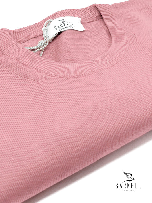 Maglia Girocollo in Puro Cotone Rasato Color Rosa Cipria