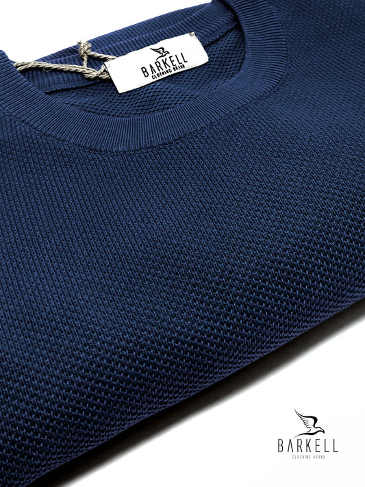 Maglia Girocollo in Puro Cotone Piquet Color Indaco