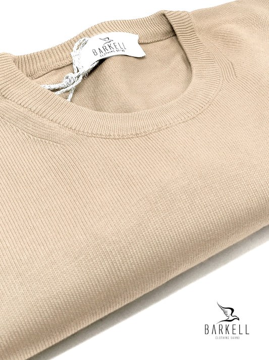 Maglia Girocollo in Puro Cotone Rasato Color Beige