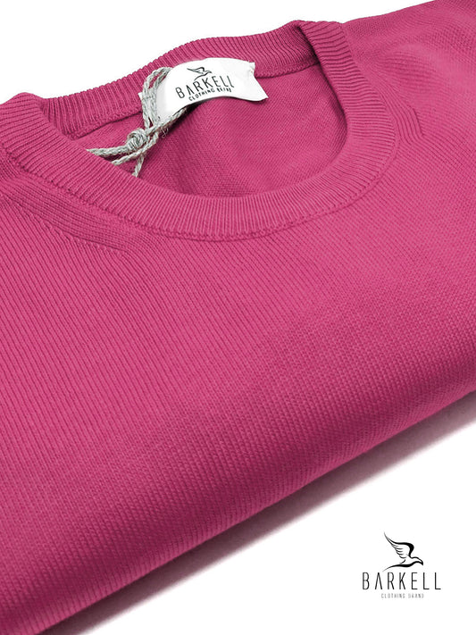 Maglia Girocollo in Puro Cotone Rasato Color Fuxia