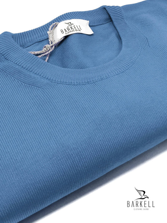 Maglia Girocollo in Puro Cotone Rasato Color Oceano