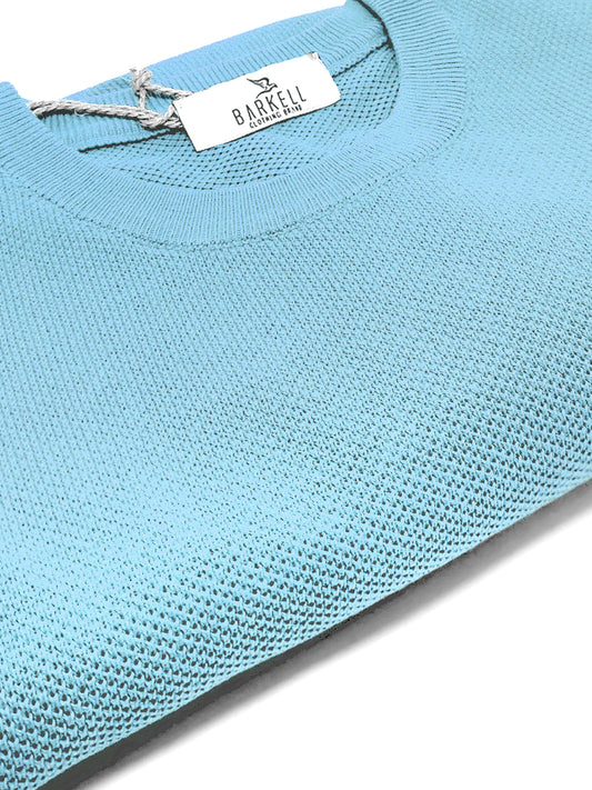 Maglia Girocollo in Puro Cotone Piquet Color Cielo