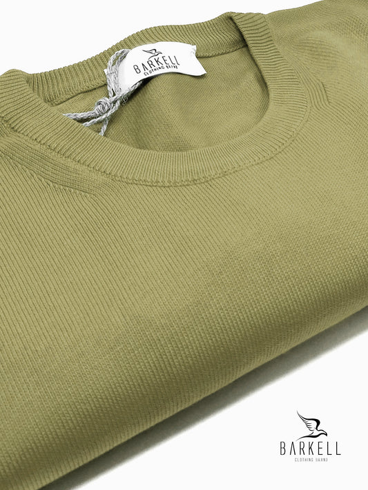 Maglia Girocollo in Puro Cotone Rasato Color Militare