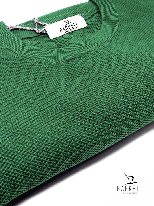 Maglia Girocollo in Puro Cotone Piquet Color Verde Prato