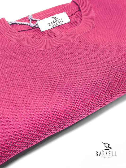 Maglia Girocollo in Puro Cotone Piquet Color Fuxia