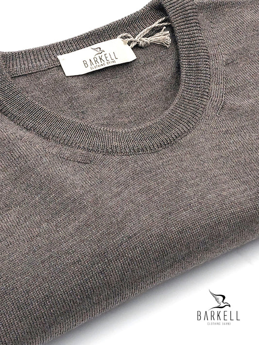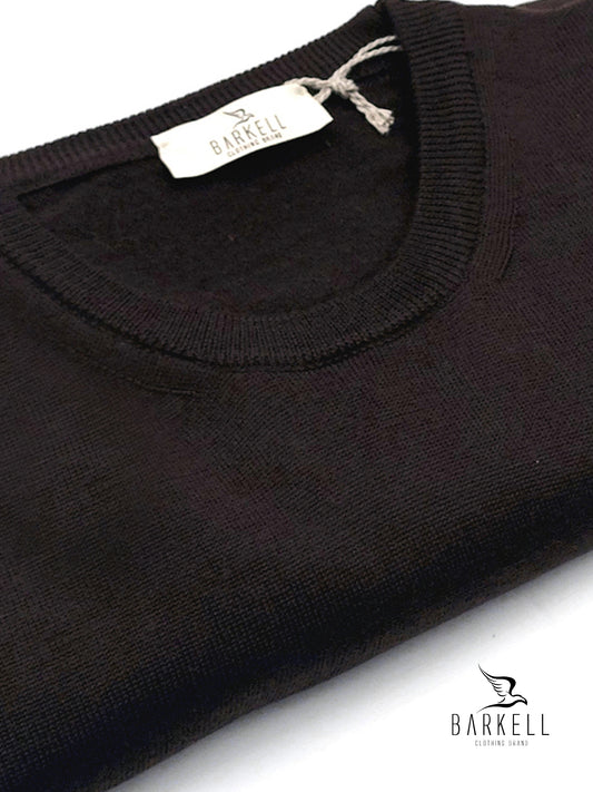 Maglia Girocollo Rasata in Pura Lana Merinos Extrafine Color Marrone