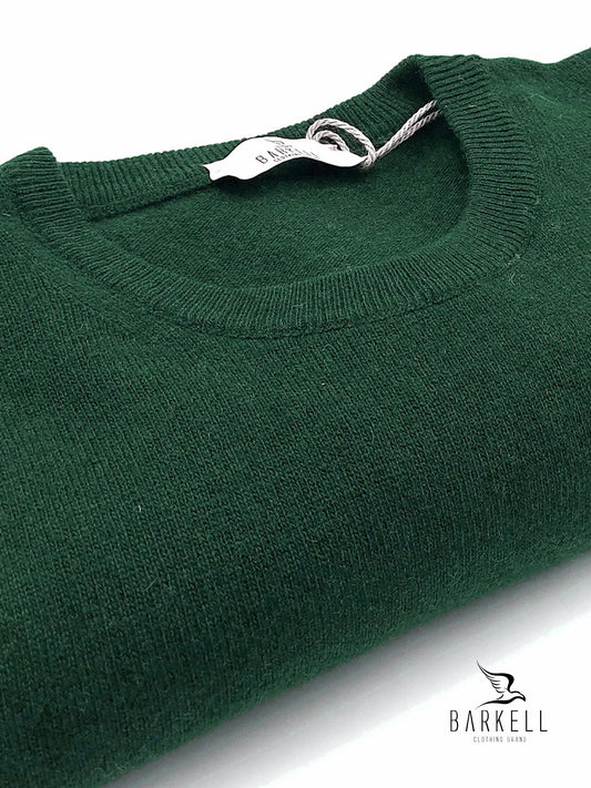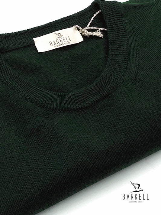 Maglia Girocollo Rasata in Pura Lana Merinos Extrafine Color Verde Bottiglia