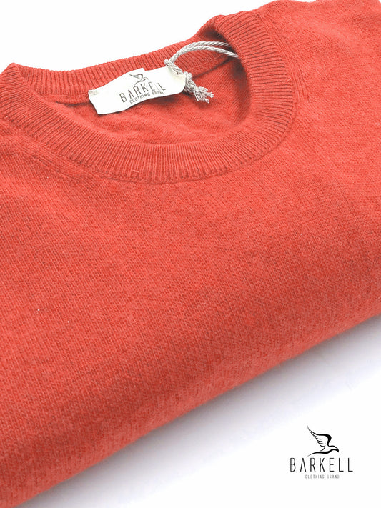 Maglia Girocollo Rasata in Misto Lana con 5% di Cashmere Color Corallo