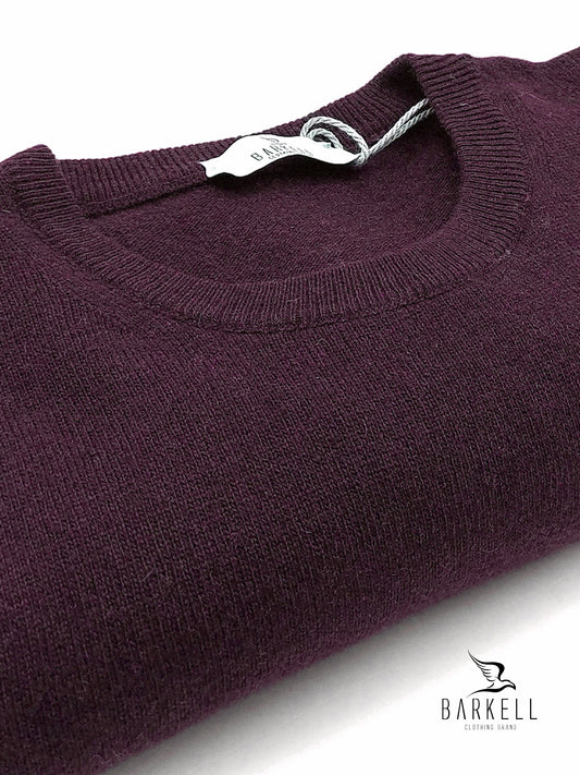 Maglia Girocollo Rasata in Misto Lana con 5% di Cashmere Color Bordeaux
