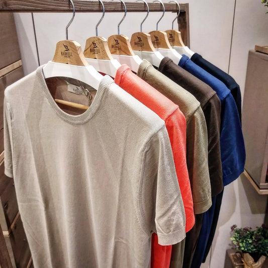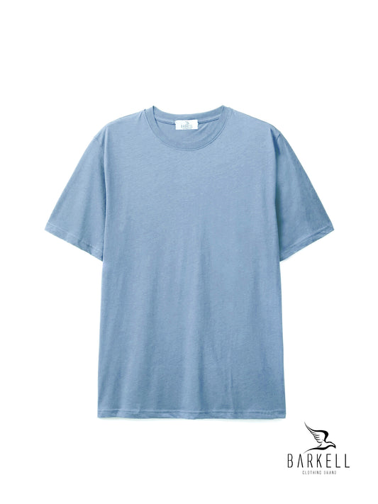 Maglia Mezza Manica Girocollo in Puro Cotone Leggero Color Cielo