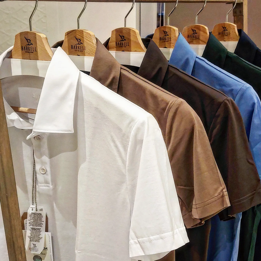 Polo con Collo Camicia in Filo di Scozia Color Azzurro