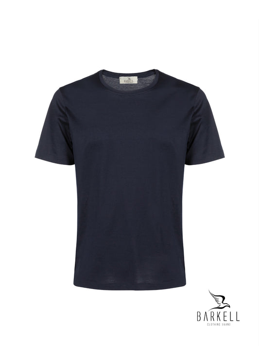 T-Shirt Girocollo in Filo di Scozia Extrafine Color Blu