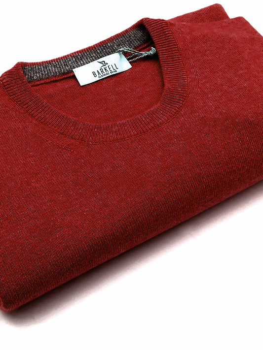 Maglia Girocollo Rasata in Misto Lana con 10% di Cashmere Color Bordò