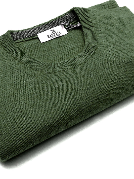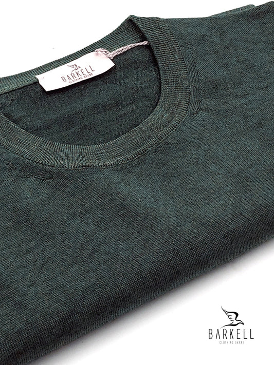 Maglia Girocollo Rasata in Misto Lana con 10% di Cashmere Color Verde