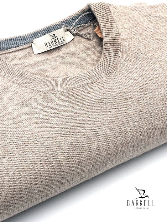 Maglia Girocollo Rasata in Pura Lana Merinos Extrafine Delavè Color Nocciola Ice Vintage