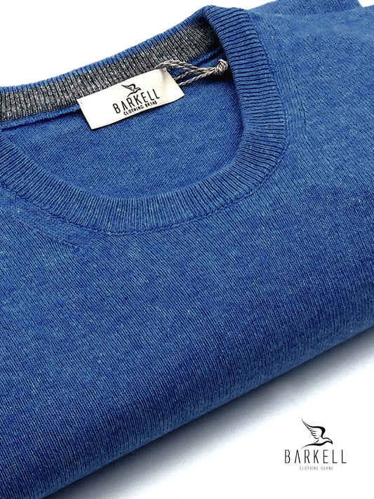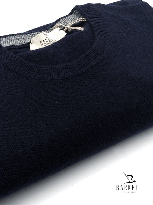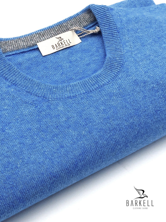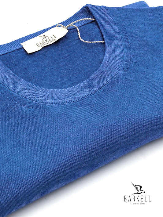 Maglia Girocollo Rasata in Misto Lana con 10% di Cashmere Color Blu