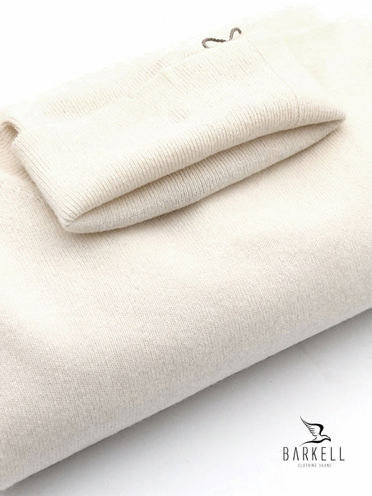 Maglia Dolcevita Rasata in Misto Lana con 10% di Cashmere Color Bianco
