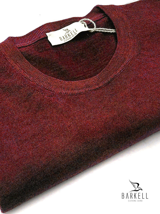 Maglia Girocollo Rasata in Pura Lana Merinos Extrafine Delavè Color Bordeaux Ice Vintage