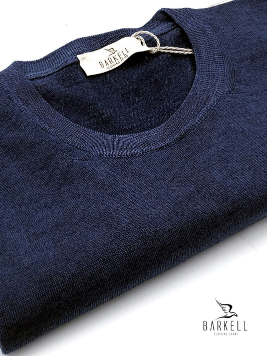 Maglia Girocollo Rasata in Pura Lana Merinos Extrafine Delavè Color Blu Denim Ice Vintage