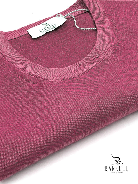 Maglia Girocollo Rasata in Pura Lana Merinos Extrafine Delavè Color Fragola Ice Vintage