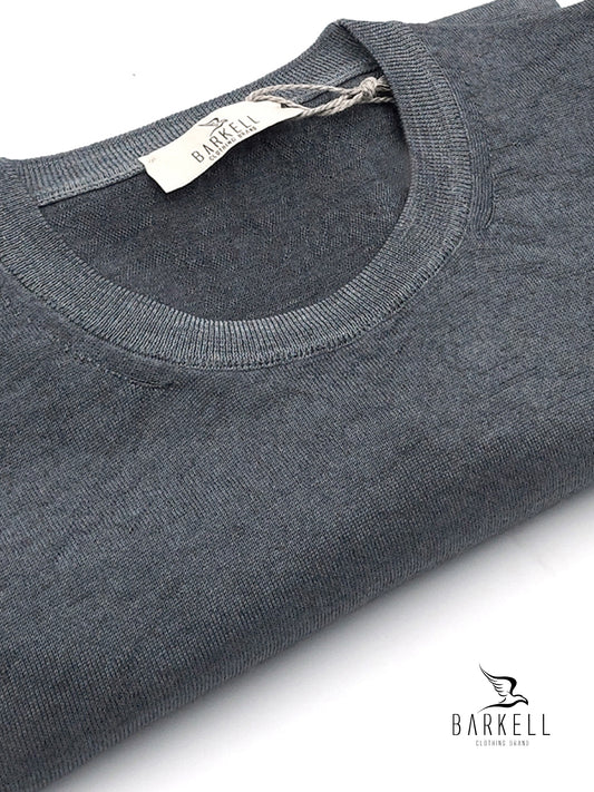 Maglia Girocollo Rasata in Pura Lana Merinos Extrafine Delavè Color Grigio Ice Vintage