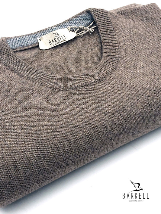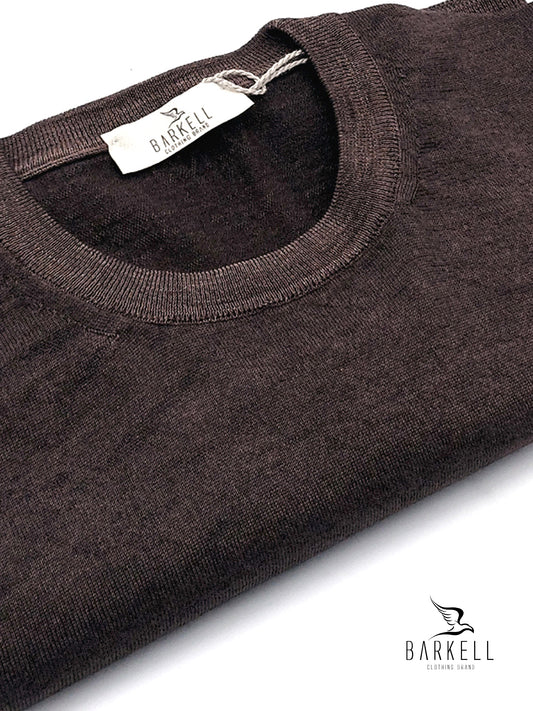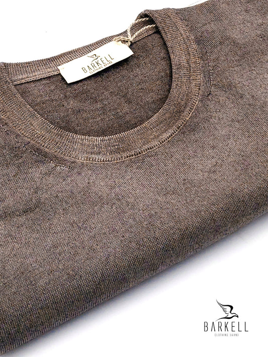 Maglia Girocollo Rasata in Pura Lana Merinos Extrafine Delavè Color Marrone Ice Vintage