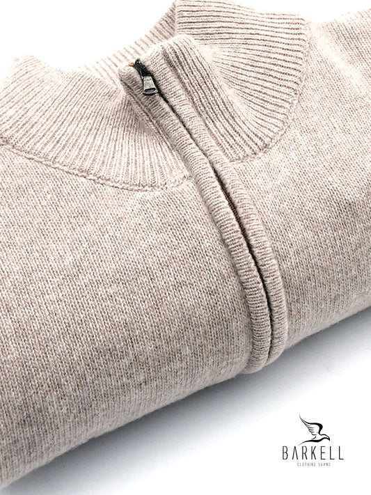 Maglia Mezza Zip in Pura Lana Supersoft Color Beige