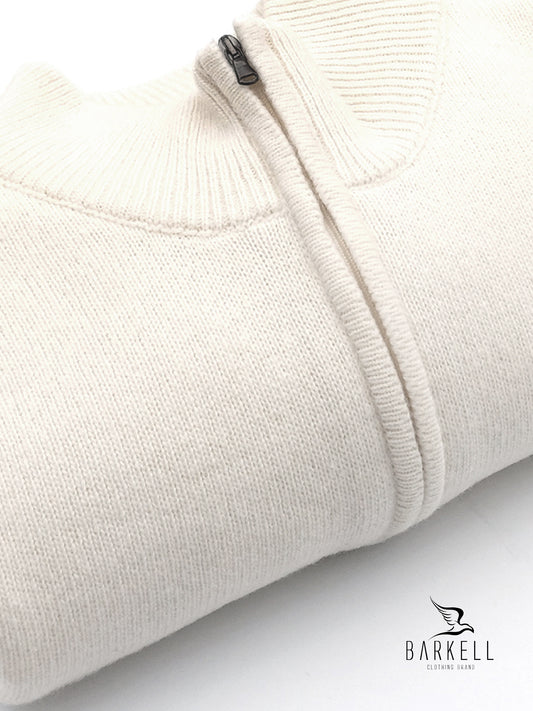 Maglia Mezza Zip in Pura Lana Supersoft Color Bianco Latte
