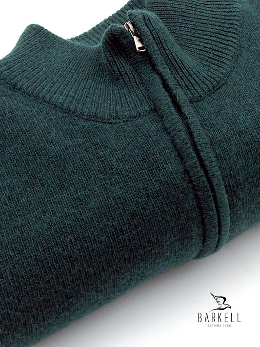 Maglia Mezza Zip in Pura Lana Supersoft Color Bottiglia