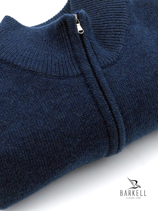 Maglia Mezza Zip in Pura Lana Supersoft Color Blu Denim