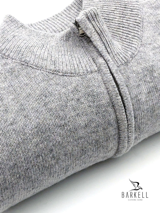 Maglia Mezza Zip in Pura Lana Supersoft Color Grigio Chiaro