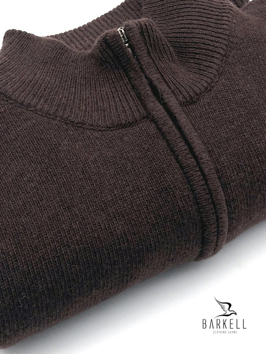 Maglia Mezza Zip in Pura Lana Supersoft Color Marrone