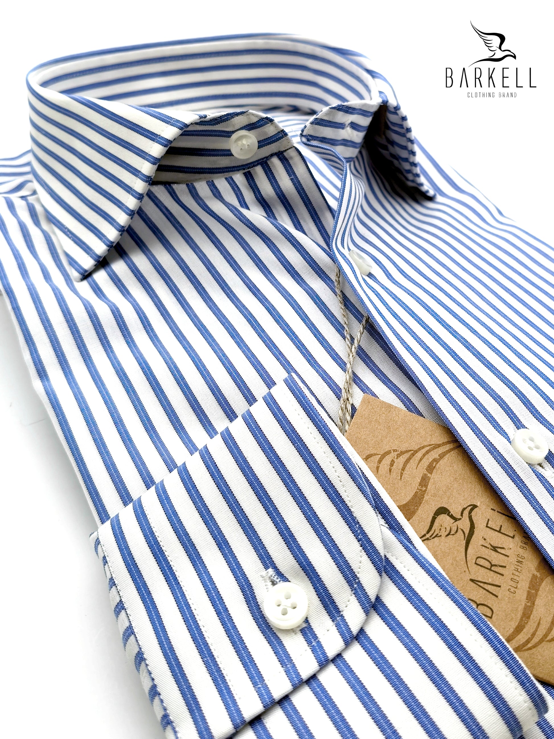 Camisa de rayas celeste y blanca hecho en Tejido Micro Oxford 100% Algodón.